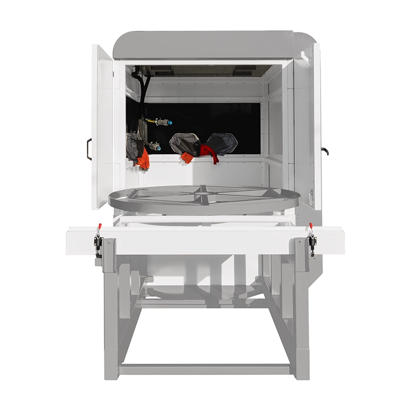 EBC series blasting machines are equipped with high-performance abrasive metering systems that allow for simultaneous operation of 1 to 6 working nozzles, work tables with adjustable speed and direction of rotation, and high-intensity lighting systems.